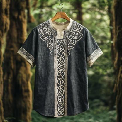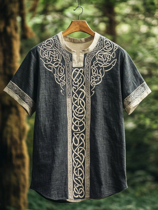 Simpfit Leinenhemd mit keltischer Wikinger-Drucken f��r Herren