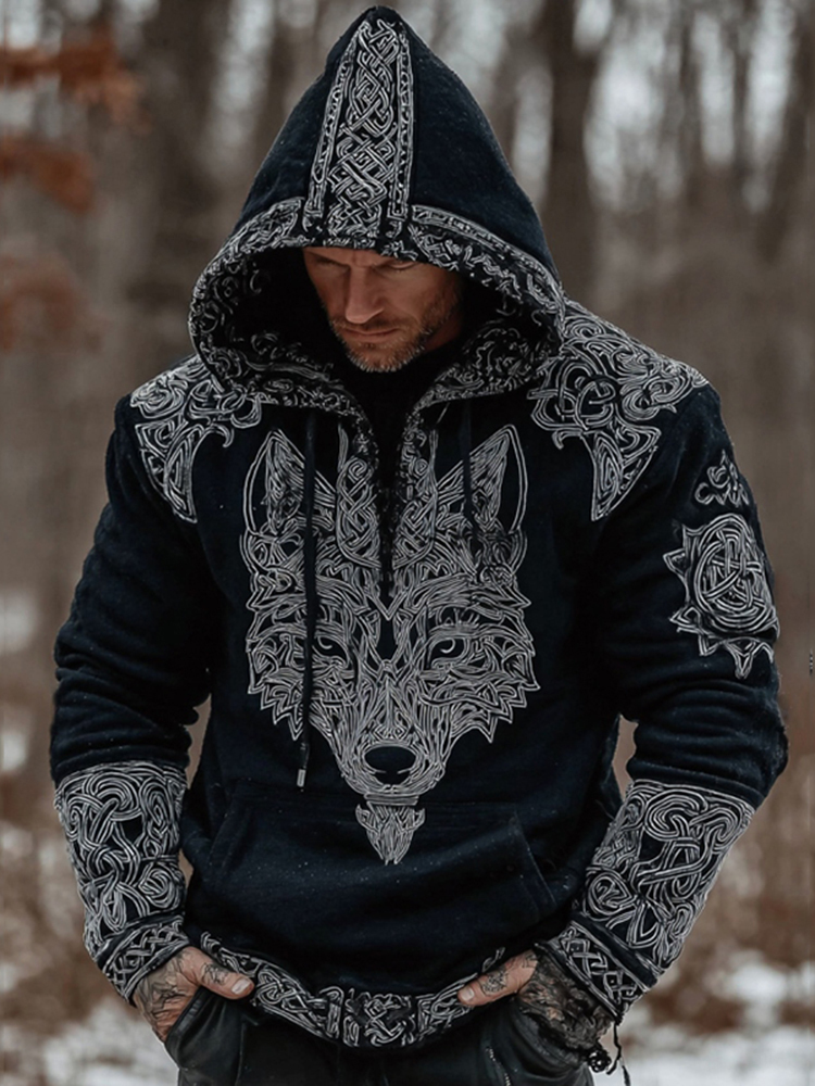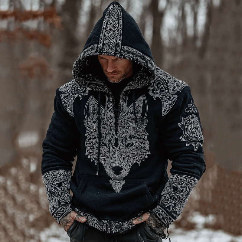 Simpfit Gem��tlicher Kapuzenpullover mit Wikinger- und keltischem Wolfsmotiv f��r Herren