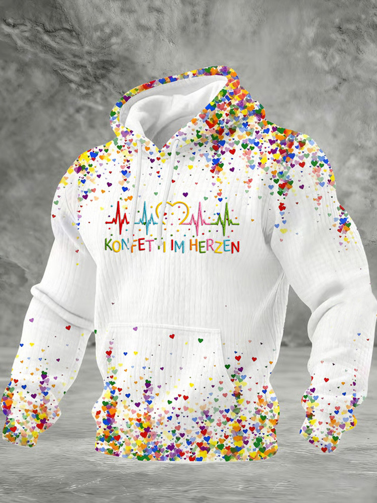 Simpfit K?lner Karneval F��r M?nner Konfetti Im Herzen Print Casual Karierten Hoodie